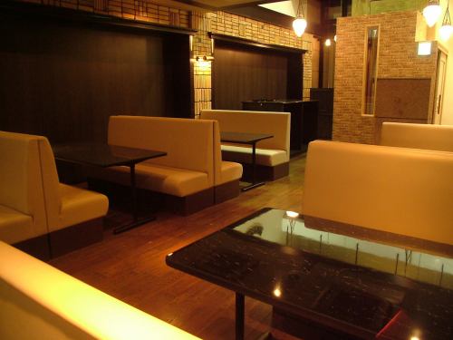1Fにボック席とカウンター席のご用意。ライトや壁にもこだわりが!スタイリッシュでモダンな店内。ゆったりとした開放感を演出。